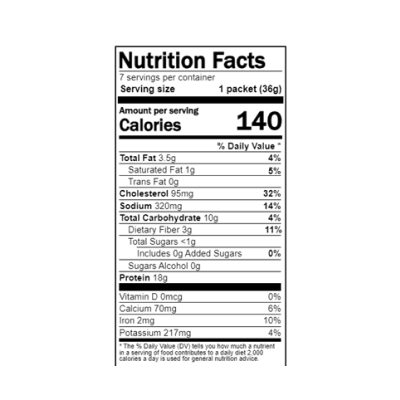 | Ingredients | Wheat gluten protein, whey protein concentrate, egg powder [eggs and/or egg whites (yeast, citric acid) and/or egg yolks], pea protein concentrate, unbleached enriched wheat flour (niacin, reduced iron, thiamine mononitrate, riboflavin, folic acid), modif |