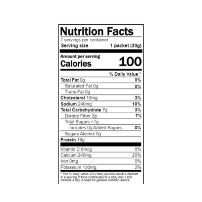 | Ingredients | Whey protein isolate, calcium caseinate, milk protein concentrate, potato flakes, inulin, sea salt, contains 2 percent or less of yeast extract, chives, onion, white pepper, butterfat, dehydrated butter, maltodextrin, xanthan gum, guar gum, sodium bicarbo |